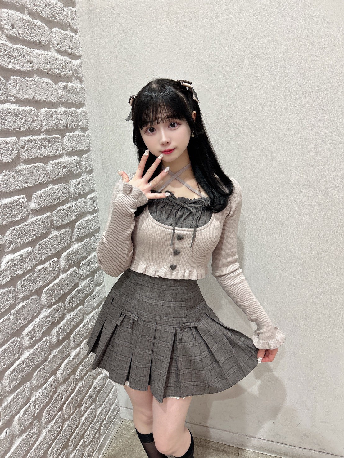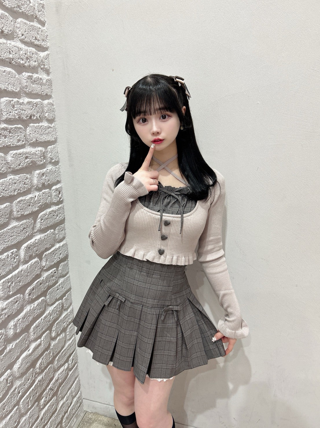 ミニリボンコットンフリルプリーツスカート