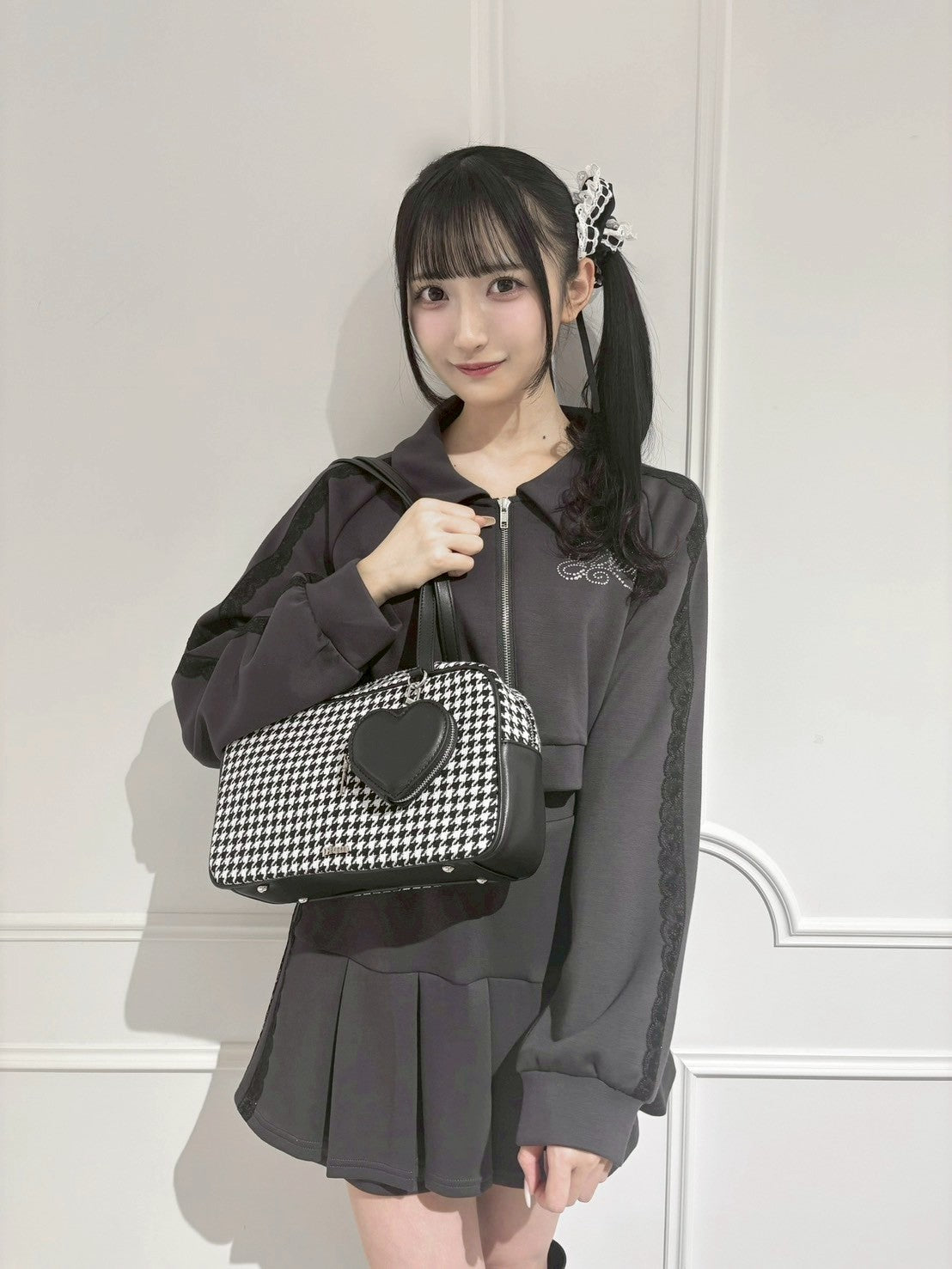 ハートポーチ付き千鳥柄スクエアボストンバッグ