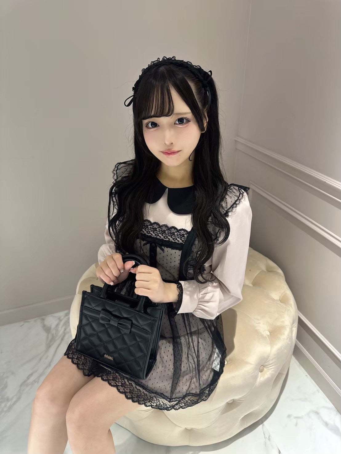 チュールエプロン付きドーリーワンピース
